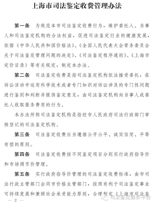 上海市司法局、上海市发改委关于发布《上海市司法鉴定收费管理办法》的通知,7月1日正式实施