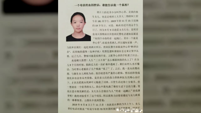 21小时前 - 控诉信的发布人名叫@李心草妈妈,其发长文称,9月9日凌晨,她收到昆明理工大学读大二的女儿李心草落水死亡的消息,一开始警方仅通知她女儿是与人“约...