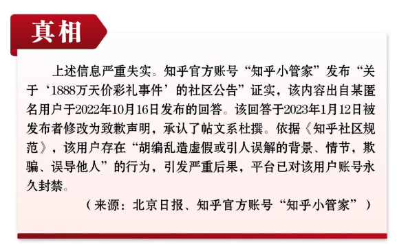 撰虚假信息,带偏舆论节奏。春节燃放烟花爆竹是我国流传已久的传统习俗,一些人借机散布“燃放烟花爆竹可以消灭新冠病毒”的谣言,误导公众认知,煽动群众对一些地方“烟花爆竹禁放令”的对立情绪,有意制造混乱。此外一到过年,“催婚催育”“天价彩礼”等话题容易吸引人们关注热议,有人胡编乱造出“江西女友索要1888万彩礼”的网帖,杜撰糅合诸多冲突元素的故事博眼球,渲染焦虑情绪。