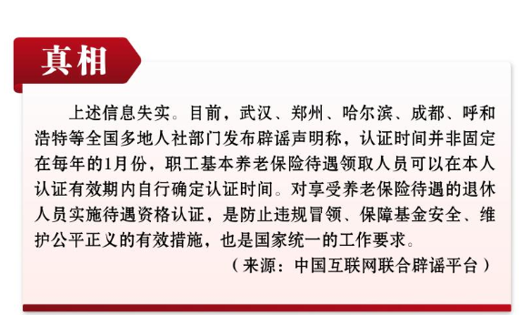 谣言3:退休人员未在2023年1月前完成认证即停发养老金?