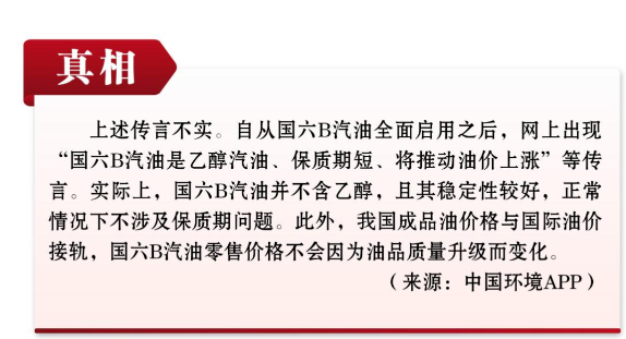 谣言1:国六B汽油是乙醇汽油、保质期短、将推动油价上涨?