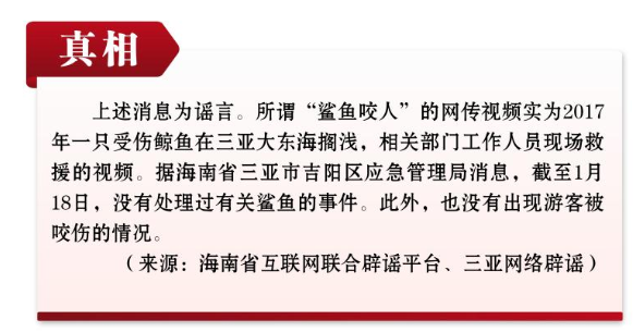 谣言8:海南三亚大东海鲨鱼咬伤游客?