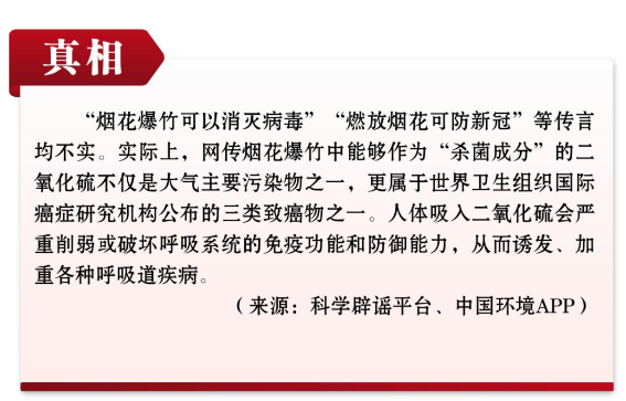 谣言5:燃放烟花爆竹可以消灭病毒,预防新冠?