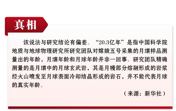 谣言10:中国科学家测定月球年龄20.3亿年?