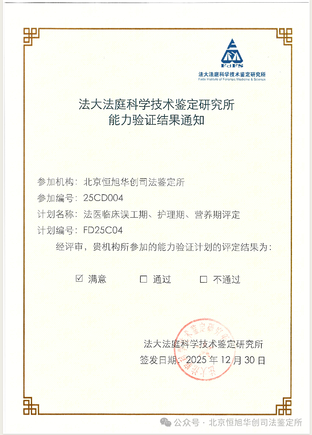 2025年度北京恒旭华创司法鉴定所-能力验证考核全优通过