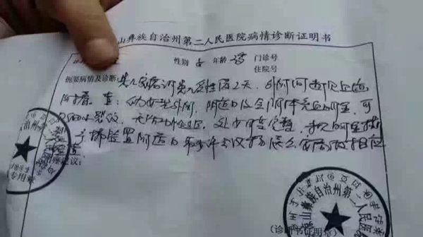 刘女士告诉“北京时间”(微信号:Btimedc),10日、11日两天,她和西西的妈妈,以及幼儿园老师一起来到西昌州一医院为西西检查。然而,“园方百般阻挠且态度嚣张,检查过程并不顺利。”