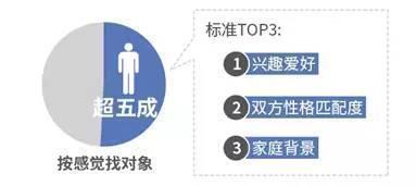 调查中发现,男女的择偶标准也呈现出明显的差异。八成的女性表示自己会按照严格的择偶标准来找对象,择偶时会优先考虑对方的工作收入、家庭背景及双方性格匹配度;而超五成的男性表示自己在择偶时更看重感觉,优先考虑对方的兴趣爱好、双方性格匹配度及家庭背景。
