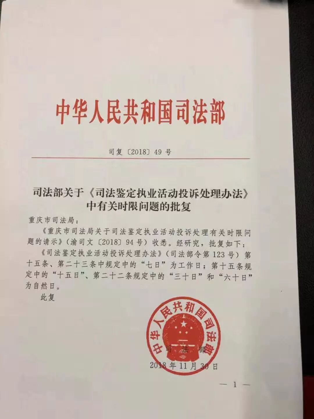 近日,司法部对《司法鉴定执业活动投诉处理办法》(司法部令123号)司法鉴定执业活动中投诉处理有关时限问题进行了批复,明确了以下时限: