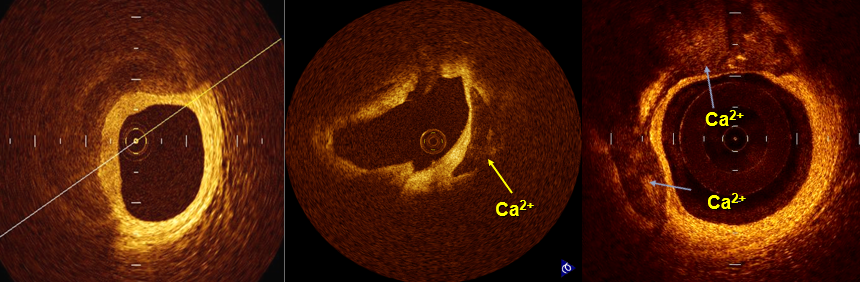 OCT图像上的斑块类型可分为三类:纤维斑块、脂质斑块、钙化斑块,如图5。