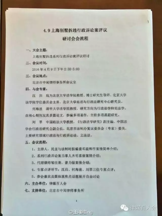 2、会议名称:上海别墅拆违行政诉讼案”研讨会
